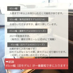 が60cm幅ミーレ食洗機の中で、一番早く手に入る可能性があります!