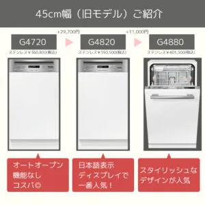 ミーレ食洗機45cm幅のモデルと違いはこのようになっています!