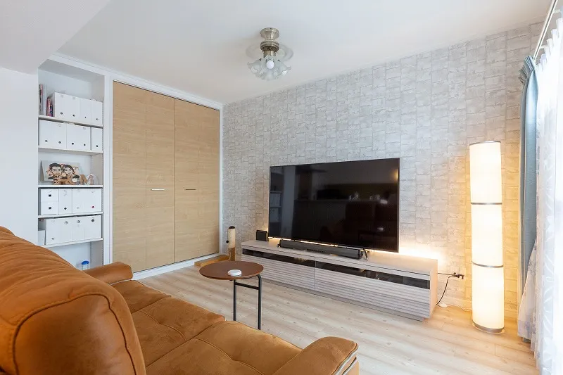 和室だった場所をリビングに。押し入れを、扉付きの収納と可動棚に造り替えたのでモノの出し入れがしやすくなりました。