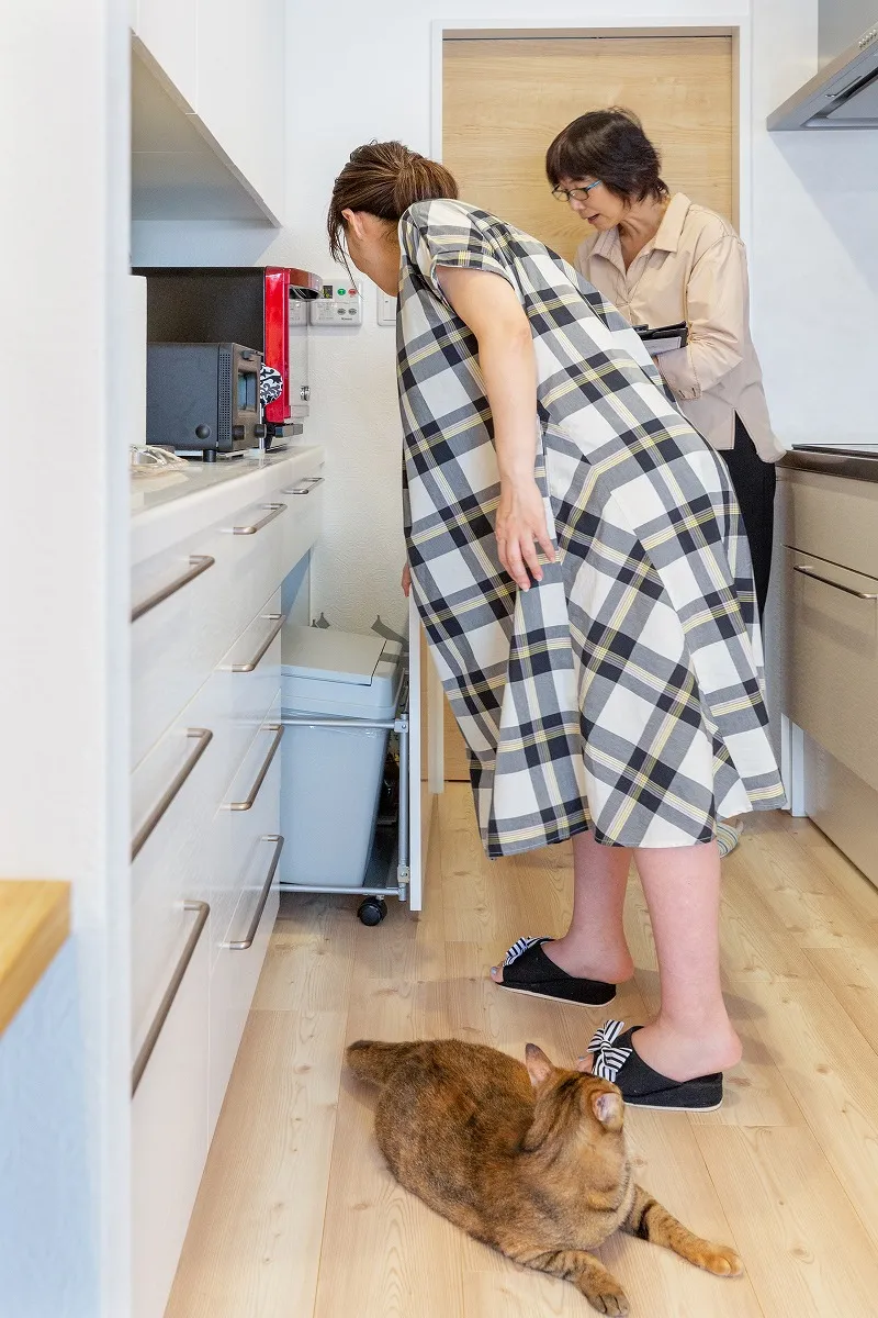 キッチンはオーダーなので「グリルや食洗機はいらない。タッチパネルのIHクッキングヒーターにしたい。ここにコンセントが欲しい。ゴミ箱ワゴンの大きさはこのぐらい」など自分の思いどおりになりました。