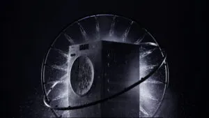 水または空気の薄い膜が形成され、ドラムと⾐類間のクッション変わりになるそうです。