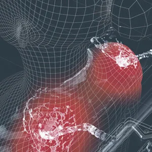 下図のように膜状の吐水の下に隠されたウェーブ状の水流は、両肩の緊張しやすい筋肉周辺をリズミカルな