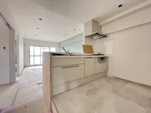 内装工事が終わり、おなじみのオーダーキッチンの設置も完了しています。
