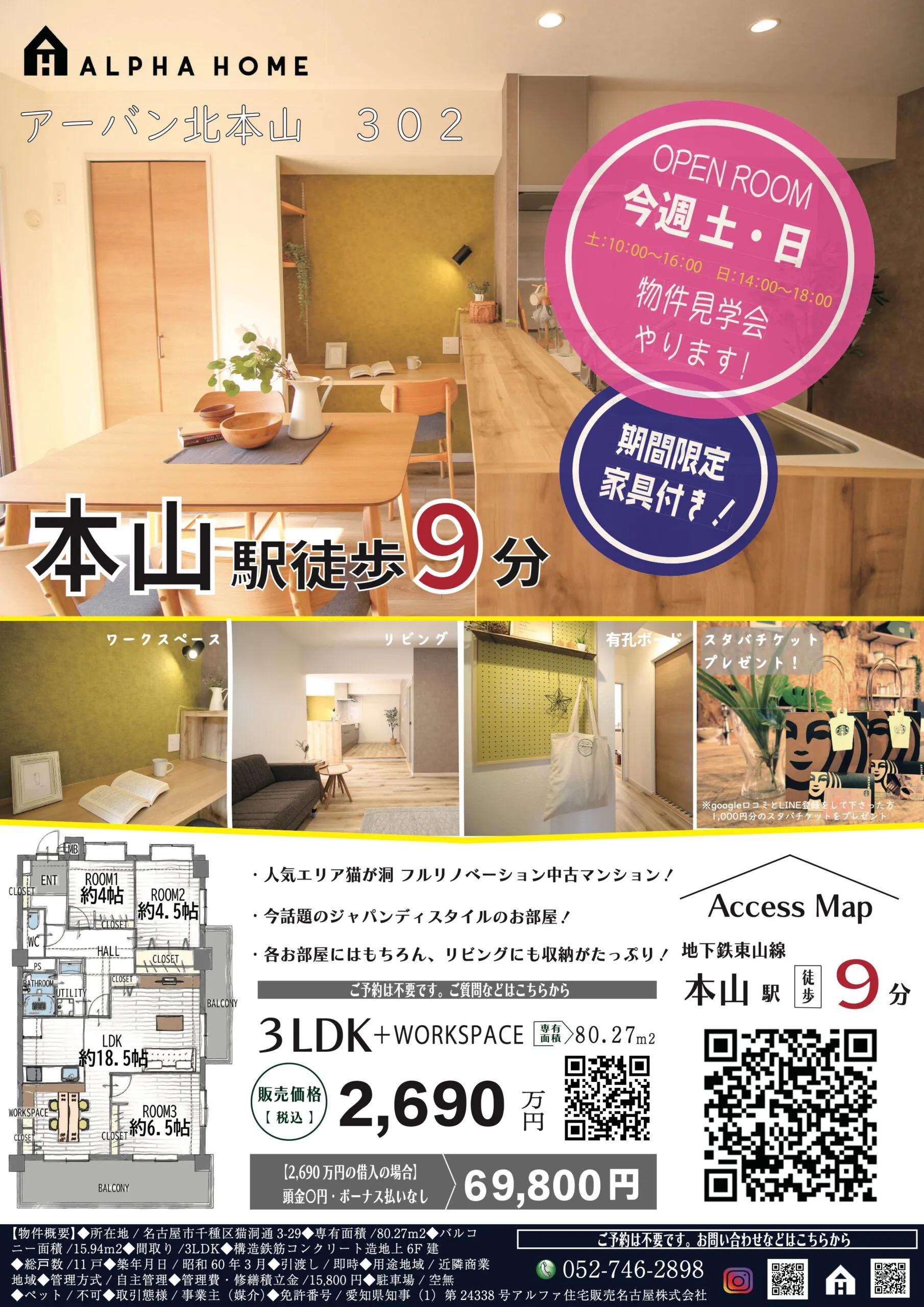 人気エリア、千種区猫洞通の中古マンションリノベーション完成販売見学会開催いたします!